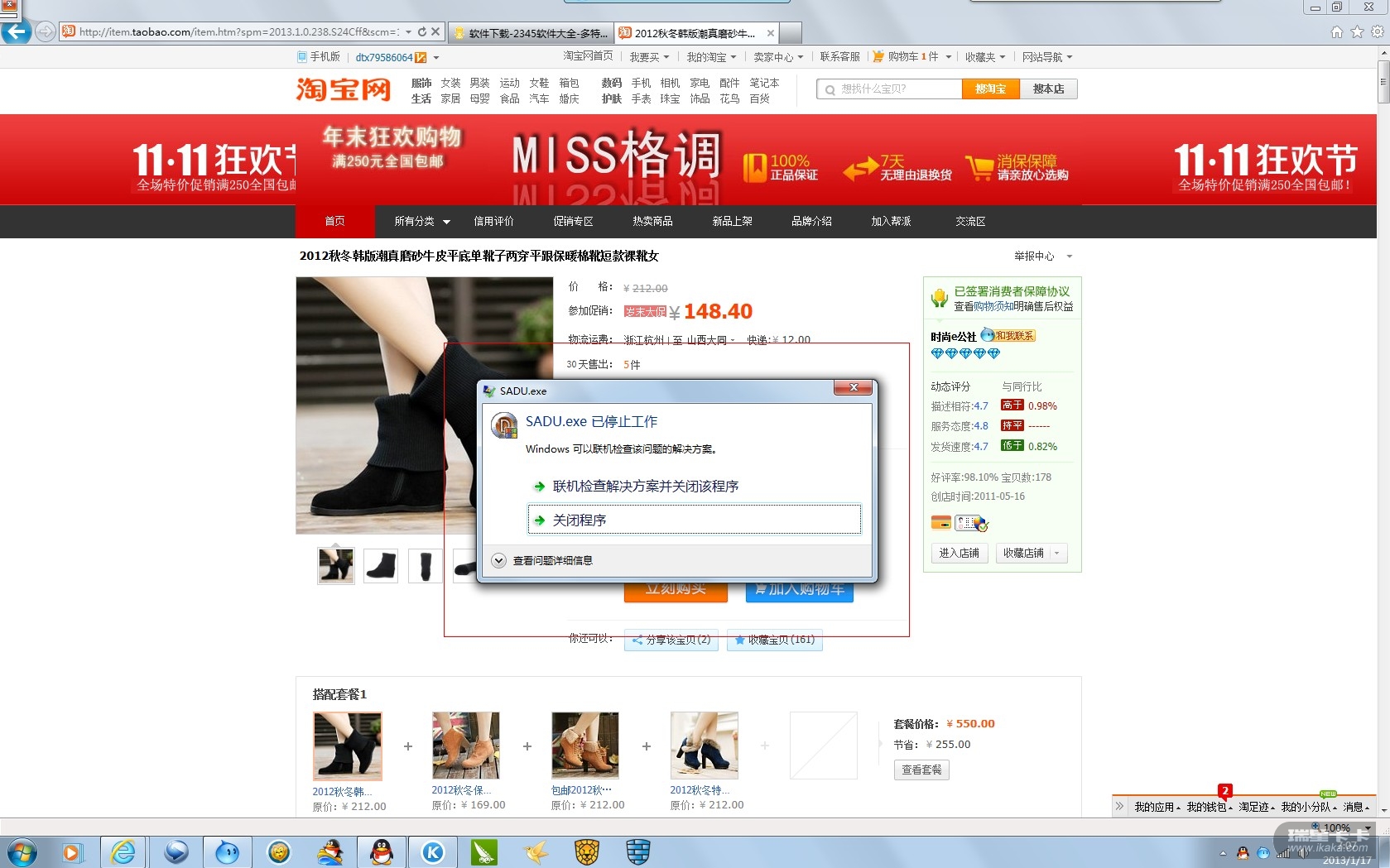 :kaka1: 嘿嘿!由于本人不是很懂,只是简单看到“sadu.exe已停止工作”的语句,才想到瑞星,正好我也装有瑞星套装
