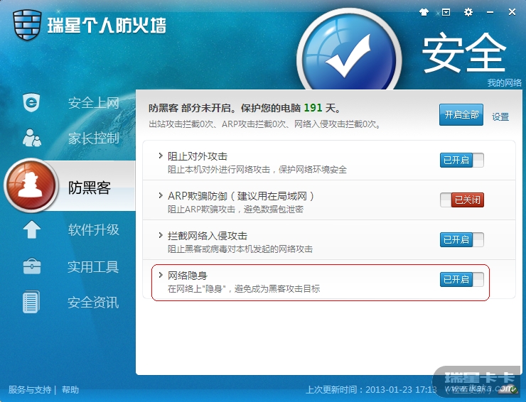 关于WiFi热点的设置,我自己已经配置好了,检查了了网络共享的相关服务都是已经启动的,并且PAD和手机均已经连接上了这个热点,并获取到了IP地址和DNS,问题就在于开了瑞星防火墙的情况下,手机和PAD无法上网,关闭瑞星防火墙在不修改其他任何配置的情况下,手机和PAD上网正常,所以怀疑与瑞星防火墙的“防蹭网”有关,能否单独关闭这个防蹭网的功能?
