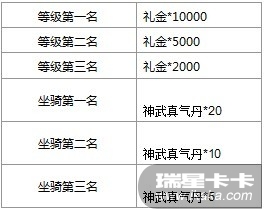活动内容:服务器会于12月6日23:59记录等级排行榜、坐骑排行榜上的排名,排名前3名的玩家即能赢得我们送出的海量礼金。