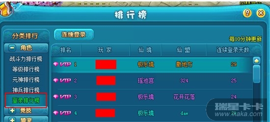 、添加连续登录排行榜,显示连续登录天数排行前50的玩家。