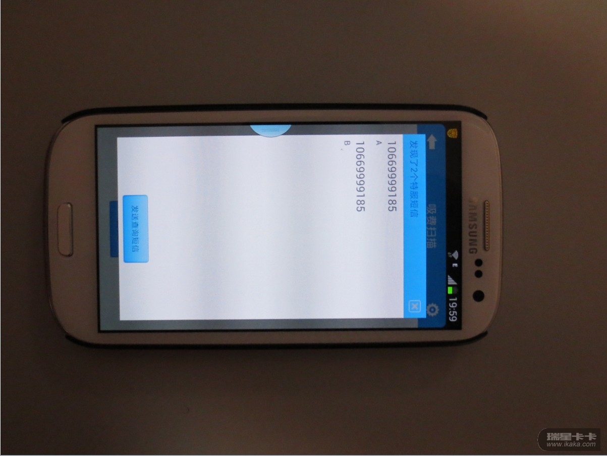 说明:用“吸费扫描”功能扫描时,发现了2个特服短信,按下“发送查询短信”也不行