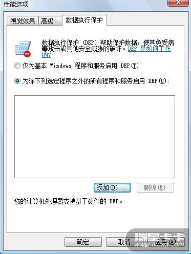 操作方法:右键我的电脑——属性——高级(性能)设置——数据执行保护,选择“为除下列选定程序之外的所有程序和服务启用DEP”,再单击“添加”,定位到加密盘的安装目录,找到rsvd.exe,将其添加进来。重启电脑后设置生效。