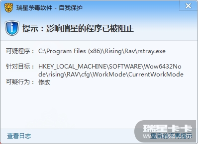 rstray不是瑞星自己的东西么?怎么就阻止了呢?