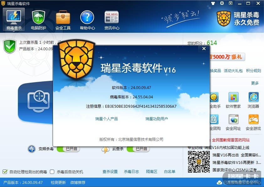 在使用瑞星杀毒软件的时候,出现了一个问题。(如图所示)