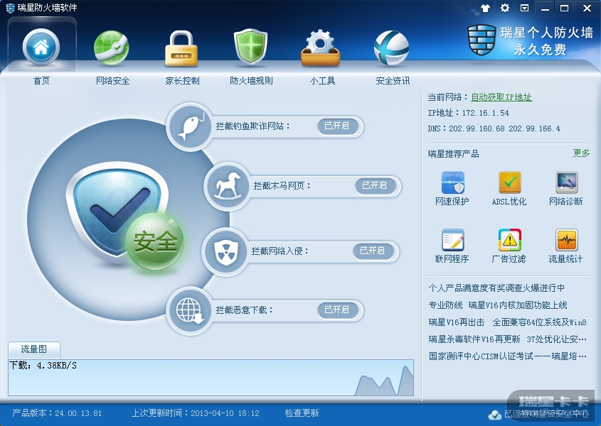升级日志已经更新了。感谢您使用瑞星个人防火墙V16!