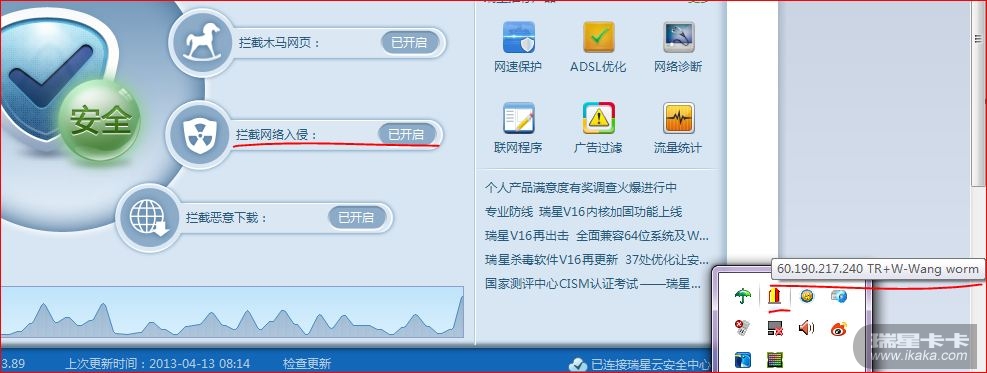 托盘图标提示拦截了多次远程登陆和接入,日志中也有显示,可是怎么没有在防火墙拦截入侵主页面上显示呢?