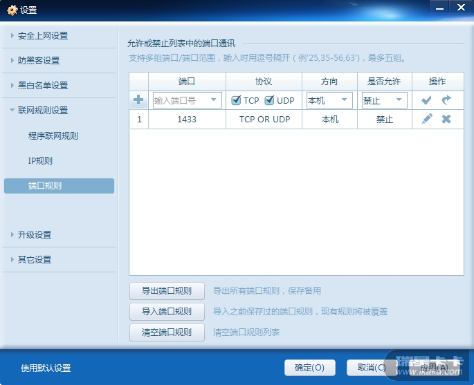 请问瑞星防火墙怎么设置关闭1433端口啊
