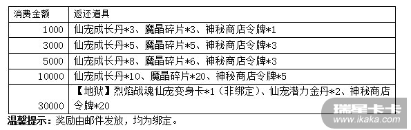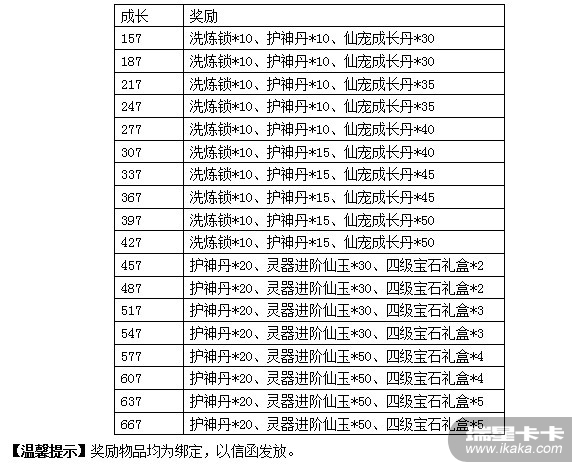 活动期间,将仙宠提升至指定成长可获得额外奖励。