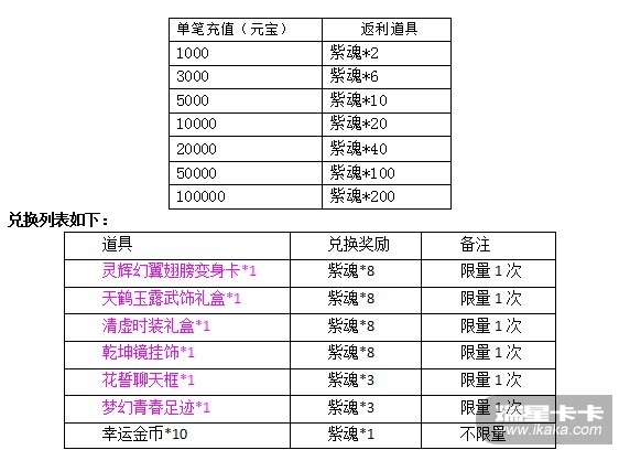 单笔充值大礼活动期间,单笔充值达到指定额度,还可以获得以下超值丰厚的奖励哦!收集一定数量的紫魂还可在活动面板兑换“云淡风轻”套装和超值道具哦!