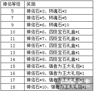 活动期间,将任意装备神佑提升到指定等级,可获得额外系统赠礼。