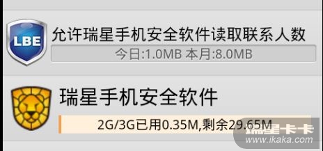 此外那个流量监控我觉得不准确。首先是我的三星i9308,没root,昨晚装上瑞星到现在15个小时显示走了80多kb的流量,事实上这手机我都没放sim卡,何谈流量。另一个手机是华为U8800+,已root,没有出现这种情况,但是把10086发来的流量短信识别为骚扰短信了。
