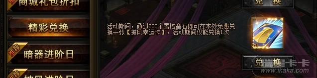 为什么我的背包里会打到雪域蛮石,这个看到了,是因为我打怪爆的,但是这个雪域蛮石说是可以在活动界面兑换东西,可我在活动大厅里没找到相关可以用雪域蛮石兑换的东西,求解决,谢谢