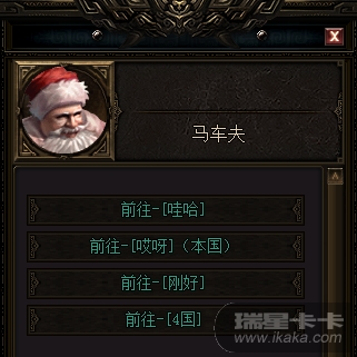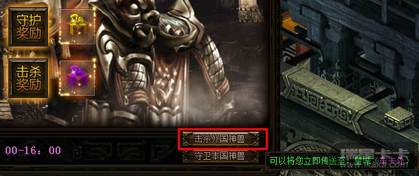 也可以在15:00~16:00护国神兽活动开启后,通过神兽活动规则面板上的按钮,直接免费传送到皇城车夫处,再与车夫对话,前往外国: