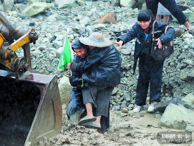 四川映秀突发泥石流 挖掘机转移受困者