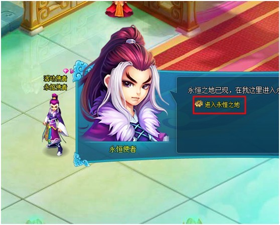 1、进入永恒广场后,找到使者(坐标34、43),点击传送进入;