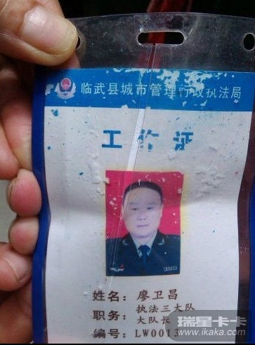 死者曾拼死从打人者身上抢下胸牌,胸牌主人为临武县城市管理行政执法局执法三大队大队长廖卫昌。
