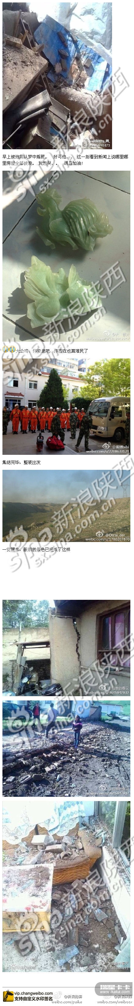 今天07时45分在甘肃省定西市岷县、漳县交界(北纬34.5度,东经104.2度)发生6.6级地震,震源深度20千米。随后又发生多次余震,截至目前,岷县、漳县当地通讯中断,据初步了解,此次地震定西市塔子乡太和村受灾严重,房屋几乎全毁。