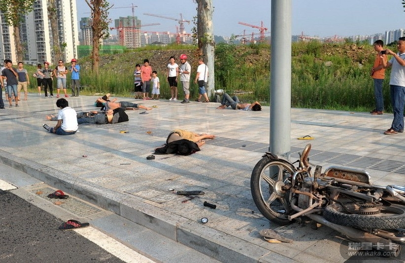 2013年7月20日下午5时许,重庆,两辆摩托车共搭乘9名青少年刚从渝北中央公园驶出不久,就在两车并排疾驶时,一摩托车上忽然有人伸脚踢了旁边摩托车一脚,悲剧就此发生:两辆摩托车撞在了一起,9人飞出车外,事故造成3人死亡。