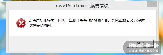 不知道图片能不能看到。大概就是说rskuik.dll丢失