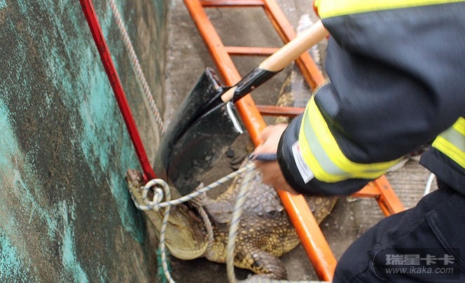 在现场,一条鳄鱼趴在高速路中间的围栏下面,不时有车辆从它身边疾驰而过。消防官兵首先拿长梯子压住鳄鱼再进行抓捕,紧接着,在围栏的另一头将绳套套在了鳄鱼嘴上。大家迅速将鳄鱼的嘴巴绑住后,将它抬离了高速公路。