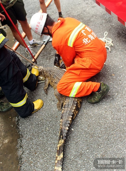7月29日上午9时53分,广西北海市合浦县北海至湛江高速路石湾出口500米处,突然出现一条长约1.6米的鳄鱼。由于高速路上车来车往十分危险,为了防止鳄鱼受伤,北海消防官兵及时将鳄鱼抓住,并移交给了当地水产畜牧部门。