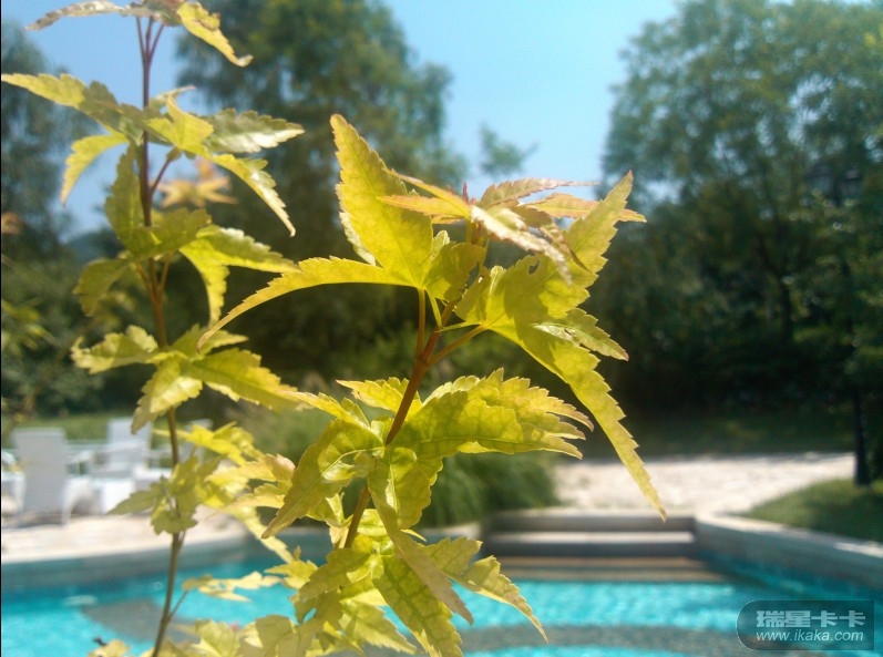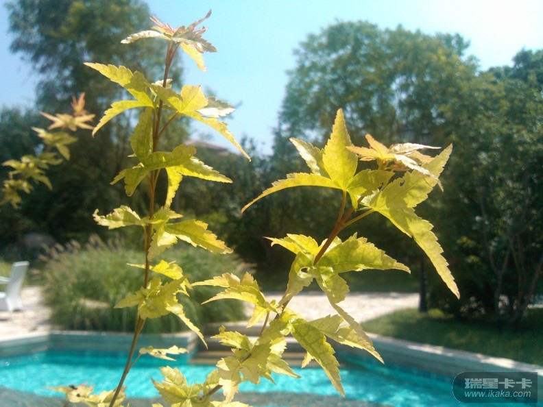 这么晴朗的天气天色还是不很蓝,不过指天的小叶子很可爱