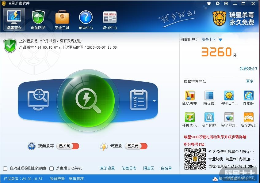 我今天像平常一样打卡升级瑞星病毒库,谁知道升级后,就变成这样