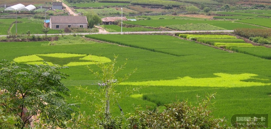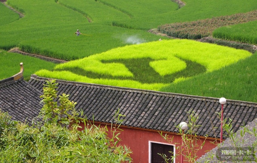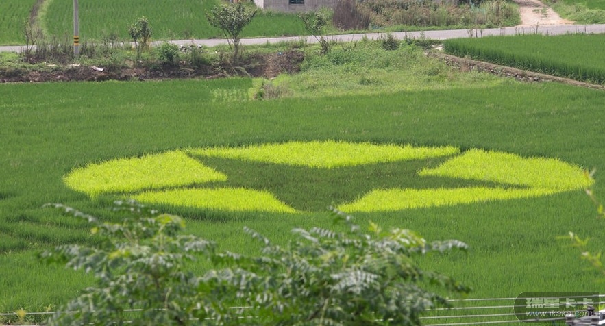 8月27日,革命老区浙江宁波余姚市梁弄镇贺溪村,在种粮大户汪银灿的农田里,一簇簇黄绿色、深绿色的水稻秧苗组成党徽、团徽等一幅幅图案,别有情趣。据汪银灿介绍,到明年春天,他将尝试种上各色油菜进行以“红色文化”为主题田间“艺术创作”。