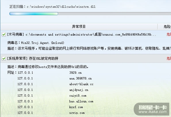 刚才下了个金山卫士查出一个hosts文件里面被修改。但是杀完以后又会被修改。