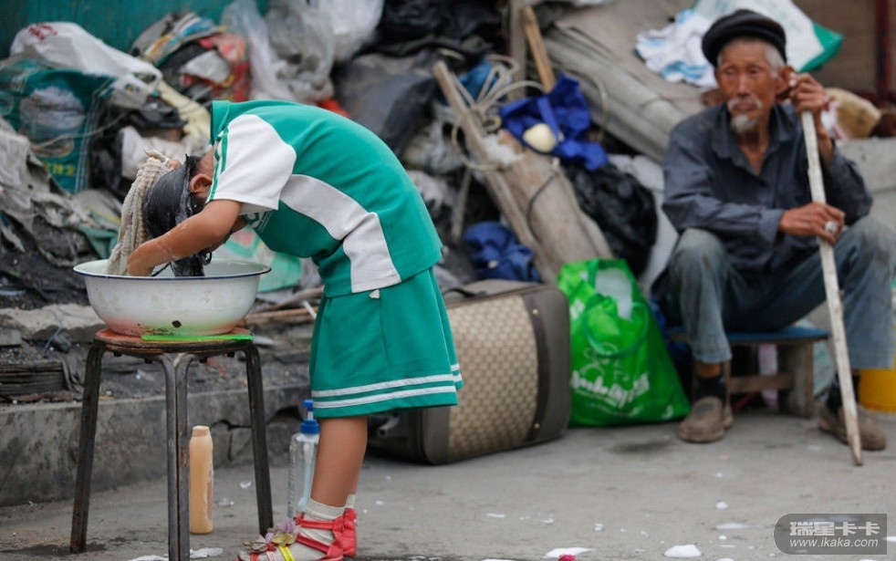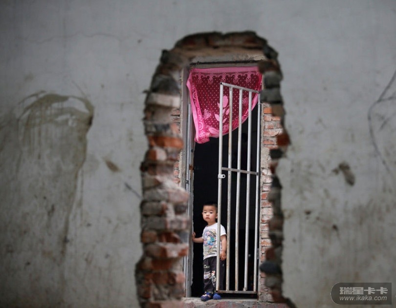 6月20日,北京外来民工居住区,杨微(音)和孩子栖居一个简易房里。