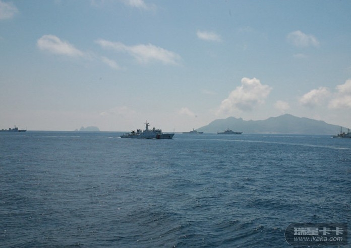 日本共同社照片,中国海警船编队在钓鱼岛领海内巡航。