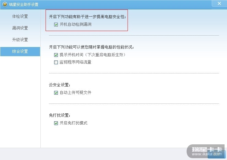 1、开机自动检测漏洞勾选了,都是默认选项;(如图所示)
