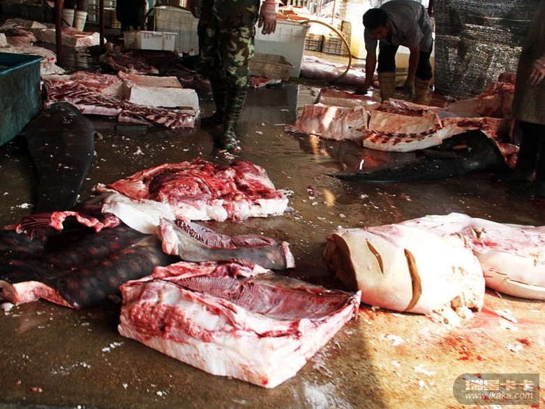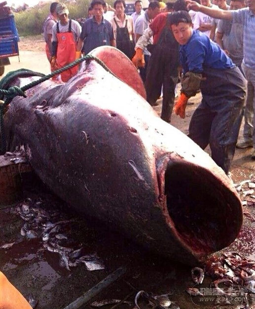 2013年9月11日,山东日照再次打捞起两条鲨鱼,其中一条已经被肢解出售,价格未知,而另一条下落不明。水产加工作坊内工人将鲨鱼肢解成“豆腐块”,这种鲨鱼又名“金钱鲨”,号称最大的鱼类。
