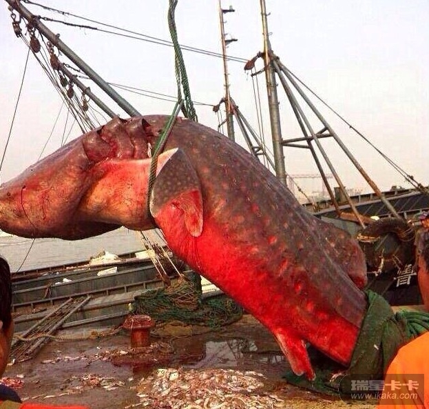 山东日照打捞起两条金钱鲨 一条已被肢解出售