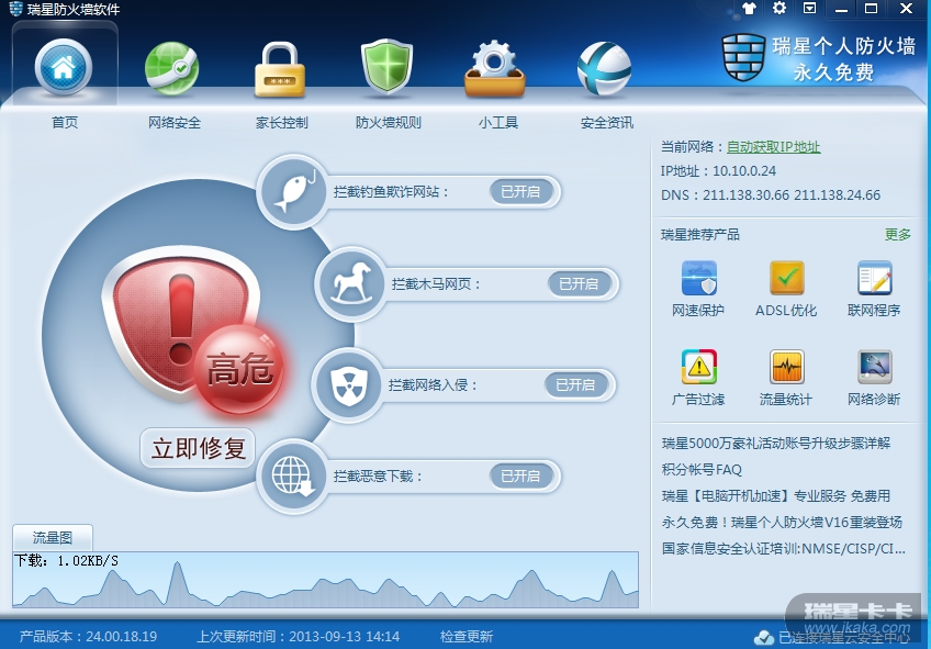 瑞星个人防火墙更新不管用!试了很久不管用啊!求解释!网络能上去!