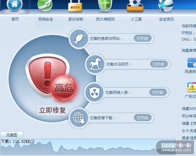 修复方法:开始菜单>>所有程序>>瑞星个人防火墙>>修复>>下一步,保留用户配置文件的勾选去掉