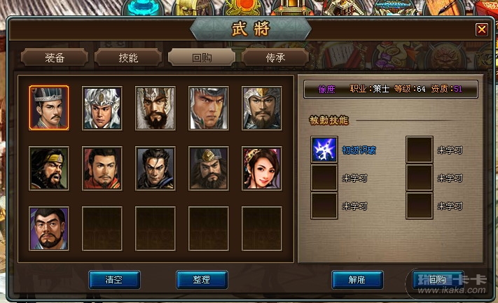 玩家,您好,我们需要全图,武将界面截图,还有回购区全图