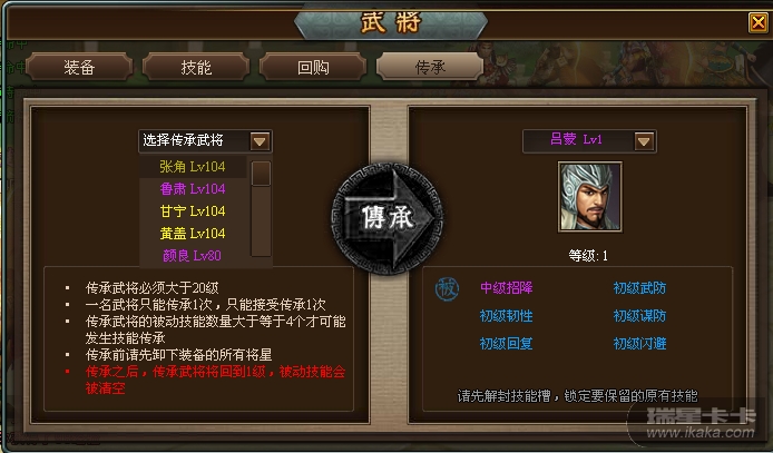 武将传承对话框截图如下:
