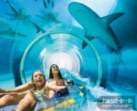 巴哈马天堂岛的水上乐园,海拔三十米高台直接冲进鲨鱼池