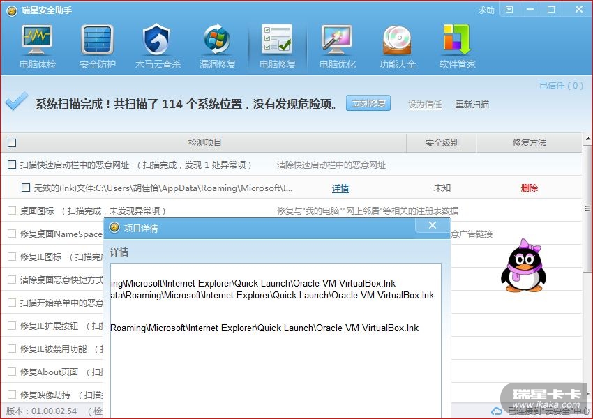 问题:将VirtualBox-4.3.0-89960-Win虚拟机快捷方式当成可疑文件删除到桌面的系统修复发现在可疑文件夹中去了!