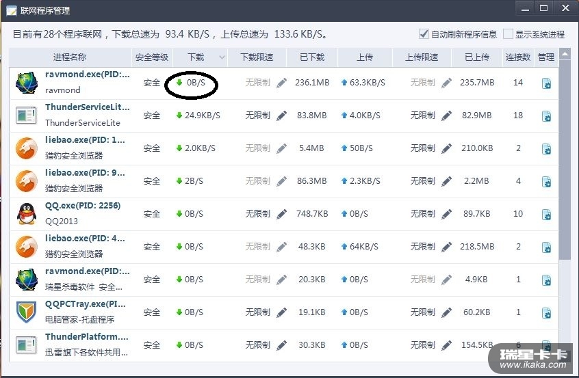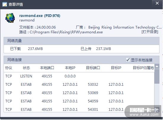 结果:瑞星ravmond进程 一直在后台 下载上传 ,占用网速,而这时 我没有进行防火墙操作