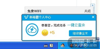 再测试瑞星V16+的时候,想到了一个不是很成熟的想法,建议做完任务时,显示相应的提示框,并且加以注明XX已完成该任务获得10分,继续做类似于下一个任务的提示。请参考一下,金山毒霸sp5.7版本的做法,谢谢!