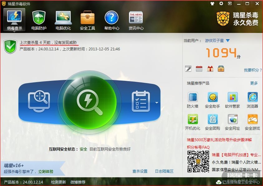 希望新界面一定要有瑞星自己的特色不要同质化,不要有广告(主界面)