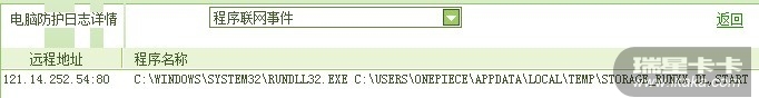 日志提示为:C:\WINDOWS\SYSTEM32\RUNDLL32.EXE C:\USERS\ONEPIECE\APPDATA\LOCAL\TEMP\STORAGE_RUNXX.DL,START是一个历史记录还记录有个远程ID地址.