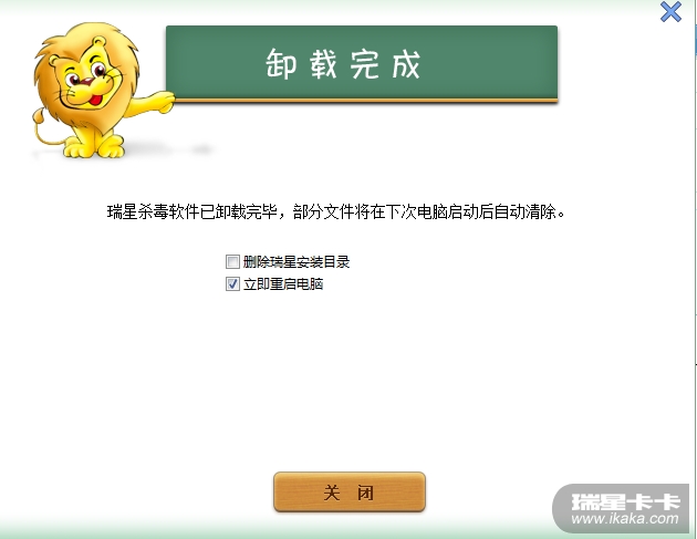 ②安装前会卸载已经安装的瑞星软件,然后提示重启。