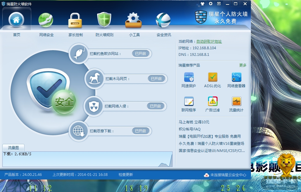 1月21日,我看到腾讯电脑管家微博消息,而且我电脑竟然也这个问题了,用百度搜索打不开,rising软件和防火墙都连接不上云安全中心。而修改DNS后就没事了。