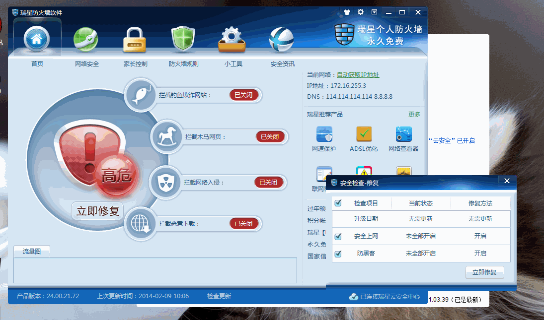 楼主做什么操作出现这个问题的?之前瑞星个人防火墙程序版本是多少?