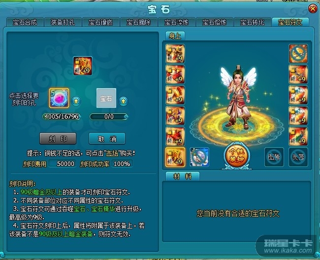 级暗金及以上装备开放宝石符文刻印功能。宝石符文通过九重天副本获得。