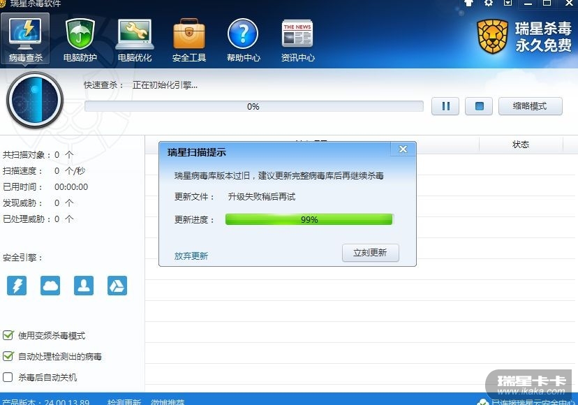 无法升级, 在右下角绿伞升级后,病毒库 不更新。