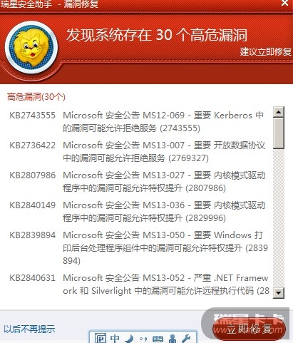 我都选择,不再提示了,还总提示修复漏洞!!!我不修复漏洞不行吗!!!